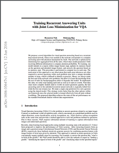 The most interesting observation from our paper is that training recurrent answering units with multi-step joint loss minimization and earlystopping improves VQA accuracy of a single-step answering unit. This effect cannot be expected from the previous approaches based on multi-step attention based methods [1,2,3], because they use independent weight parameters for each attention steps. Interestingly, our single-step answering unit trained with proposed training method outperforms other approaches based on multi-step attention and prediction.